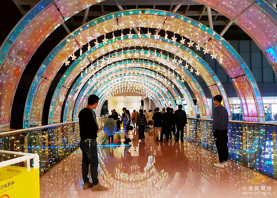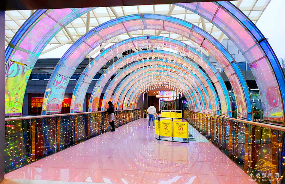 为迎合消费者在抖音、快手等线上平台的社交需求,铅山天街购物中心积极在商场的天桥走廊内布置了亮化景观时光隧道,吸引消费者前往打卡,发力“拍照经济”。