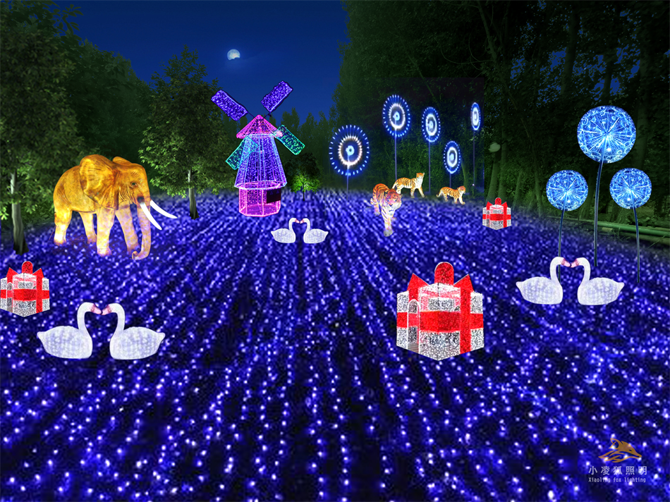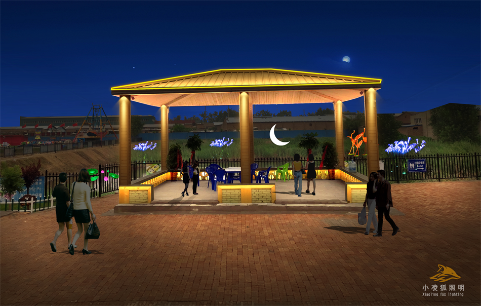 公园亮化设计应通过灯光的分层重点布局,利用投射、强调、映衬、明暗对比等手法来强调柔化空间场所产生的效果,注意眩光的严格控制应用点与面的结合,达到照明有序,柔和舒适场景,将公园景观的层次感、高低空间感诠释出来。